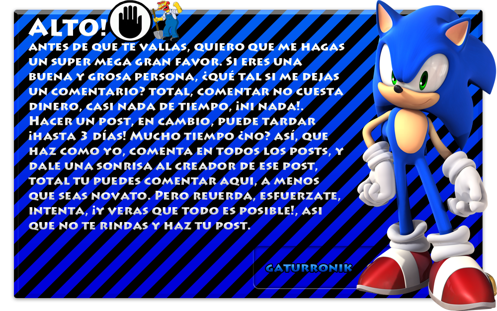 Ahora, les traigo una animacion creada por mi a tavés de esos sprites, tiene algunos errores cuando sonic salta, pero es una beta, despues voy a hacer que pelee.